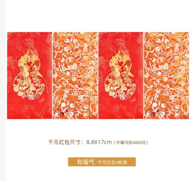 博物馆文创|中国美术学院—创意红包《有福气》字四枚装 千元红包