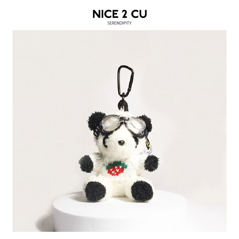 玩偶|挂件|钥匙链:太空镜白色草莓毛衣小熊