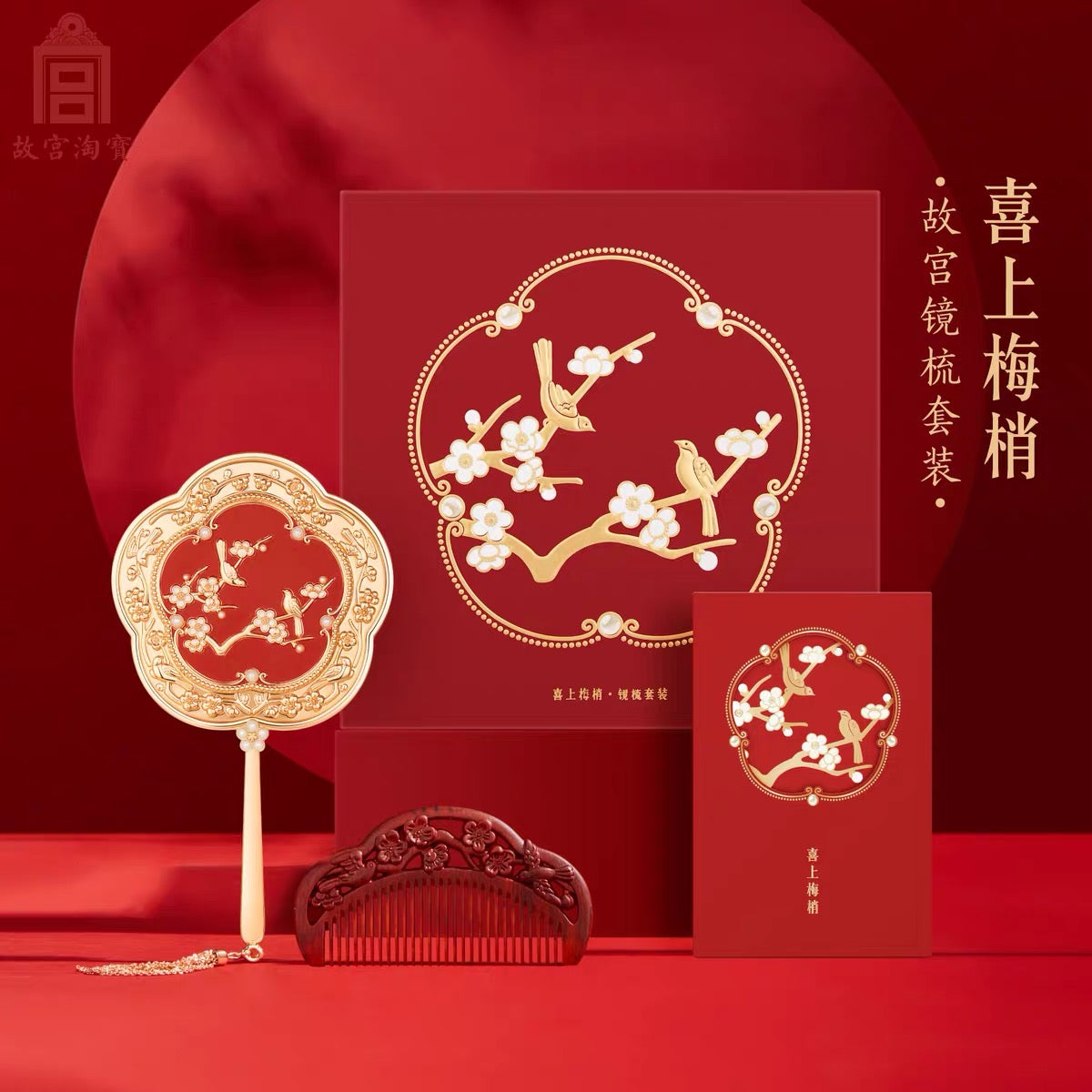 故宫文创|新婚礼盒:喜上眉梢梳镜套装