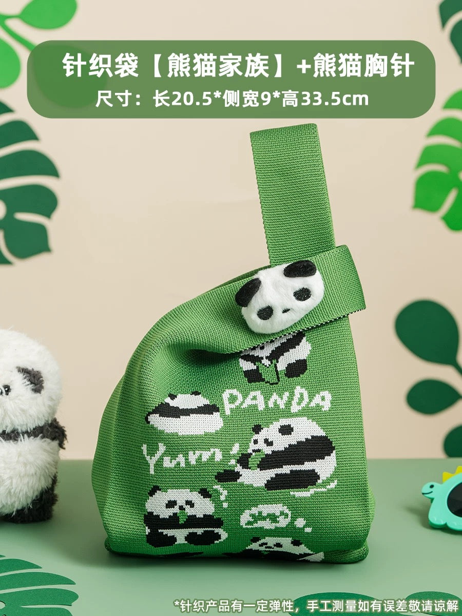 熊猫文创| 针织包 手提包:熊猫萌宝 图案